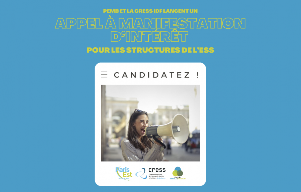 Afin de contribuer au développement de l’Economie Sociale et Solidaire (ESS) du Territoire, Paris Est Marne&Bois et la CRESS IDF lancent un appel à manifestation d’intérêt (AMI) pour mieux faire connaitre les structures de l’Economie Sociale et Solidaire de proximité.