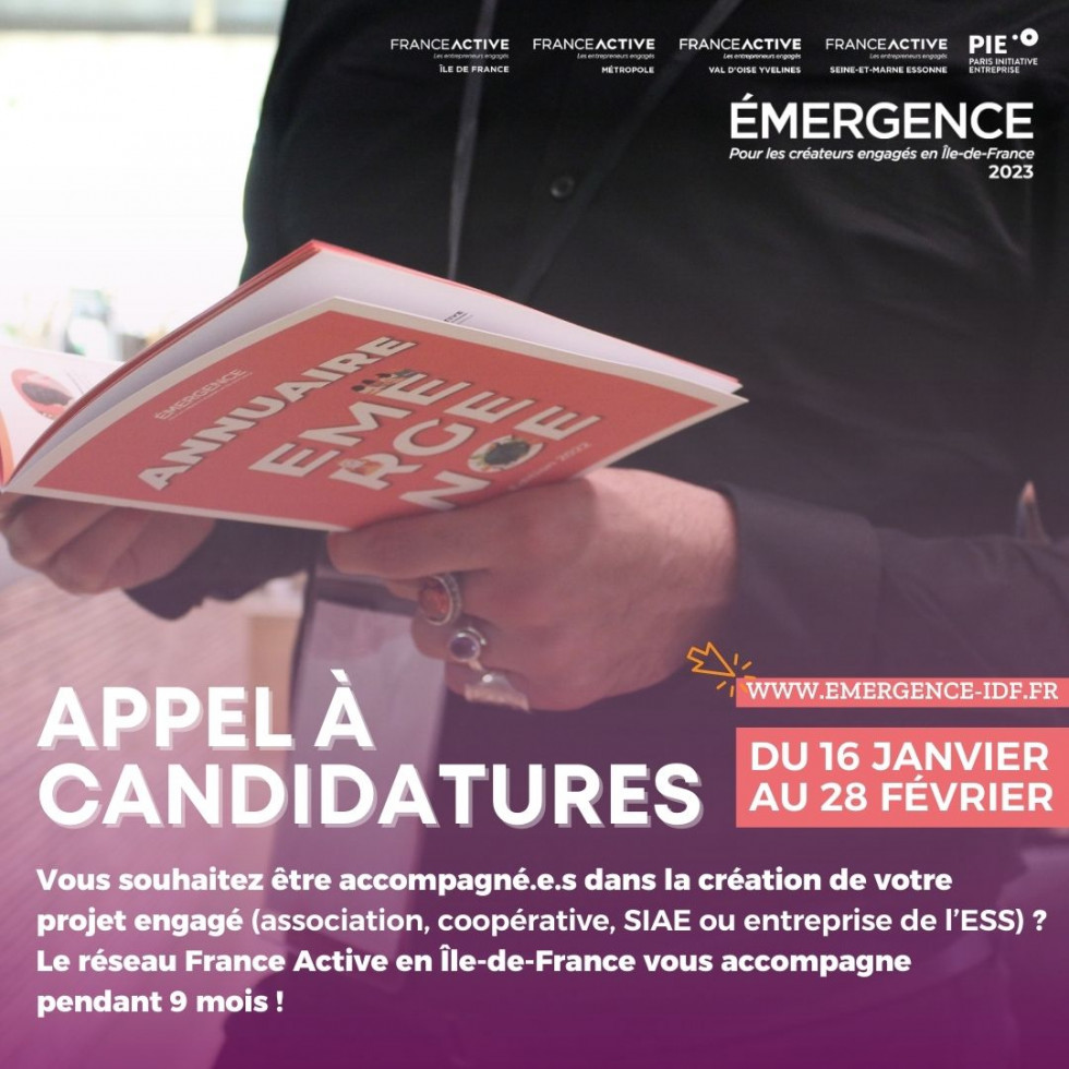 France ACTIVE METROPOLE, partenaire de Paris Est Marne&Bois, lance la 5e édition de programme Emergence Île-de-France avec un appel à candidatures du 16 janvier au 28 février 2023 !