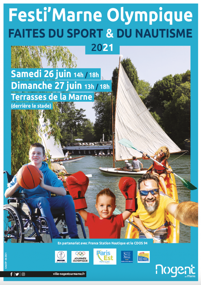 Un mois avant le lancement officiel des Jeux Olympiques de Tokyo, la ville de Nogent-sur-Marne en partenariat avec le CDOS 94 et France Station Nautique, présente le Festi’Marne Olympique 2021.