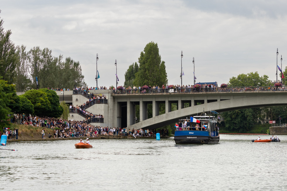 La participation de Paris Est Marne & Bois au cortège de la flamme olympique avec la navette Marne Bois Bateau Bus a été un véritable succès, dans une célébration joyeuse et mémorable des Jeux olympiques.
