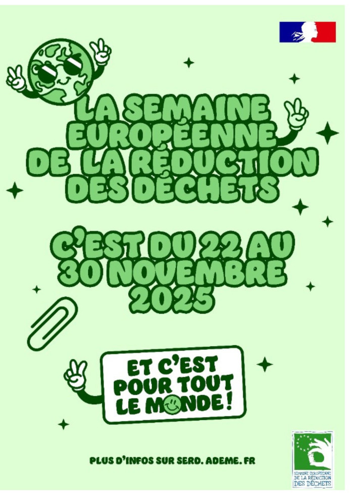 Du 22 au 30 novembre 2025, c’est la Semaine Européenne de Réduction des Déchets, initiative de sensibilisation menée à l’échelle européenne et coordonnée en France par l’Agence de la transition écologique (ADEME).