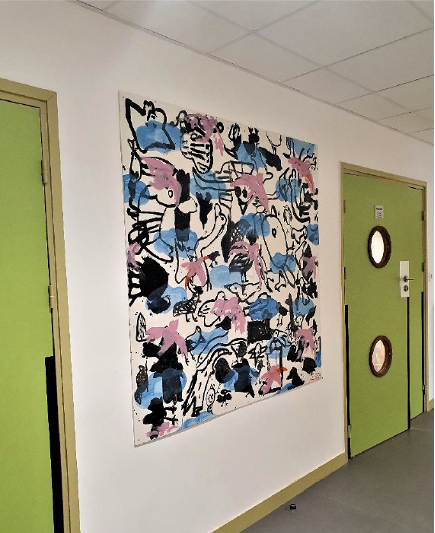Ouvert en Janvier 2019, le nouveau groupe scolaire Simone Veil à Joinville-le-Pont situé en centre-ville à proximité des bords de Marne, se définit dans un paysage urbain avec deux cours de récréation très minérales et difficiles à végétaliser. Cette problématique combinée à une nécessité d’augmenter les compétences des enseignants à l’art, outil très utilisé auprès des élèves, a amené l’équipe pédagogique à concevoir un projet de fresque intitulé « Végétal et Bords de Marne ».