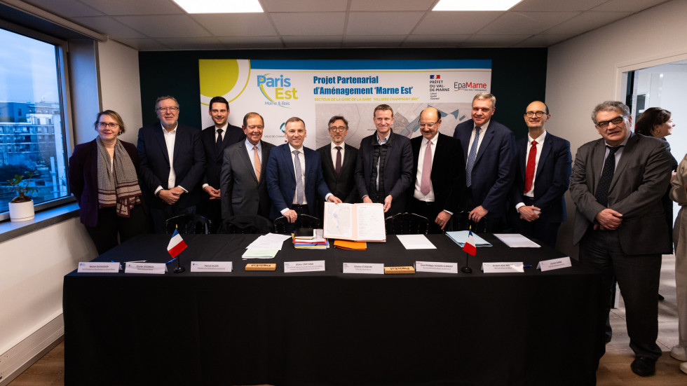 Le 11 février 2025, la signature du Projet Partenarial d'Aménagement "MARNE-EST" a marqué une étape clé pour le secteur de la gare Villiers-Champigny-Bry (VCB). Ce partenariat entre les collectivités locales, l'État et plusieurs acteurs institutionnels vise à coordonner et accélérer les projets d’aménagement urbain.