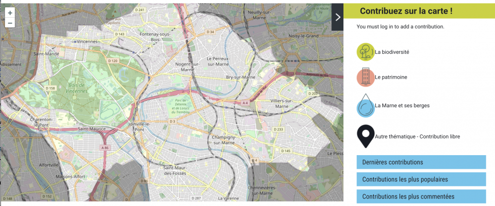 Cette carte est interactive : il est possible de cliquer sur les pictogrammes de la carte et d'y réagir par un "j'aime" ou un commentaire !