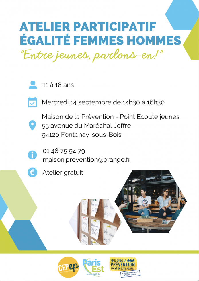 L'Intercommunalité propose un atelier gratuit participatif égalité femmes-hommes pour les jeunes de 11 à 18 ans.