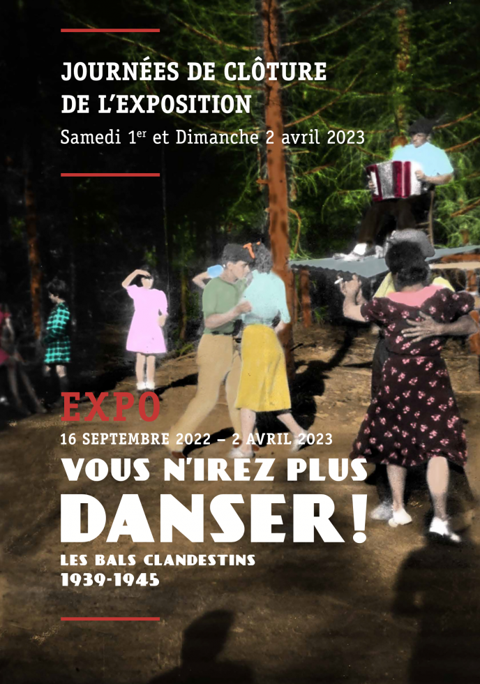 - 16h30-17h : Présentation de « Les coulisses de Vous n’irez plus danser ! Les bals clandestins 1939-1945 : l’histoire de cette exposition ».