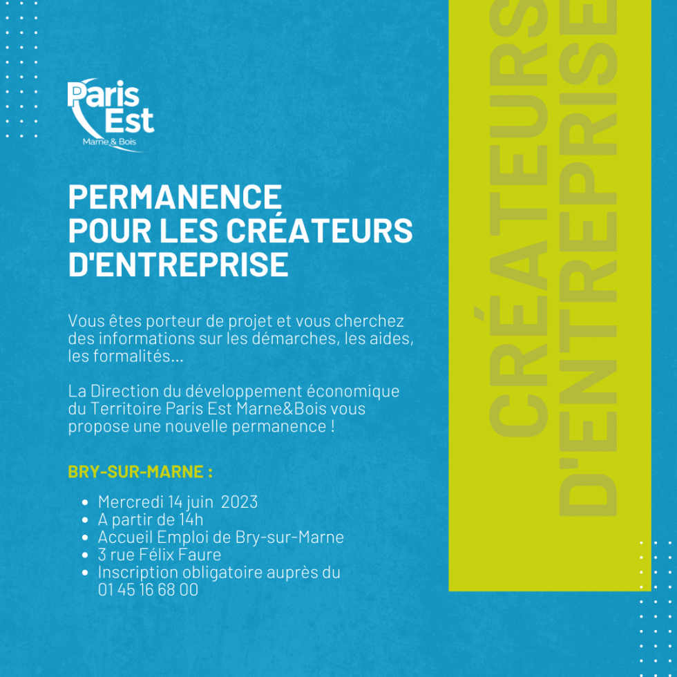 Vous êtes porteur de projet et vous cherchez des informations sur les démarches, les aides, les formalités… ? La Direction du développement économique de Paris Est Marne&Bois vous propose une nouvelle permanence :