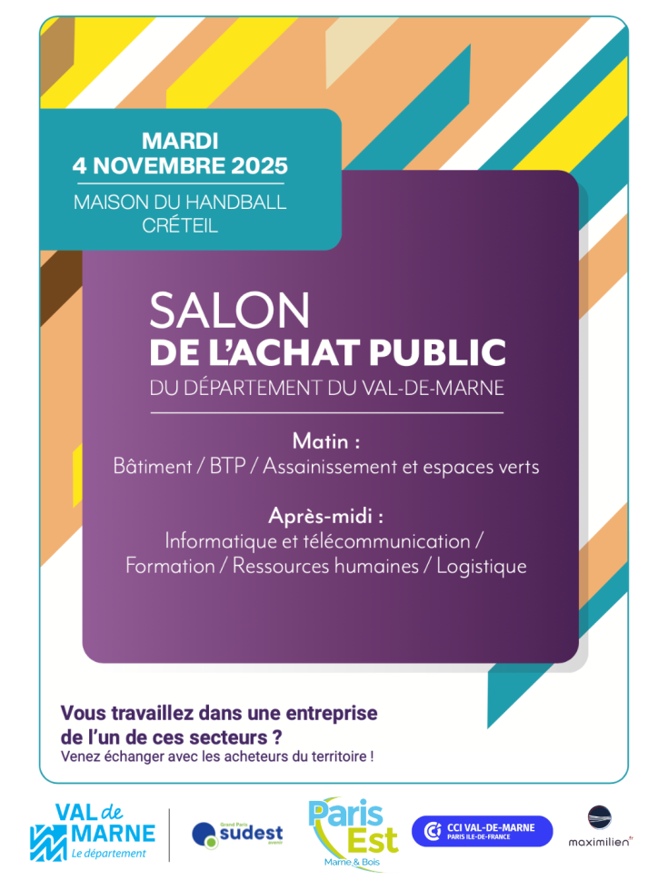 Paris Est Marne & Bois participera au Salon de l’Achat Public du Val-de-Marne pour présenter ses projets et échanger sur les initiatives durables et partenariats innovants au service du territoire.
