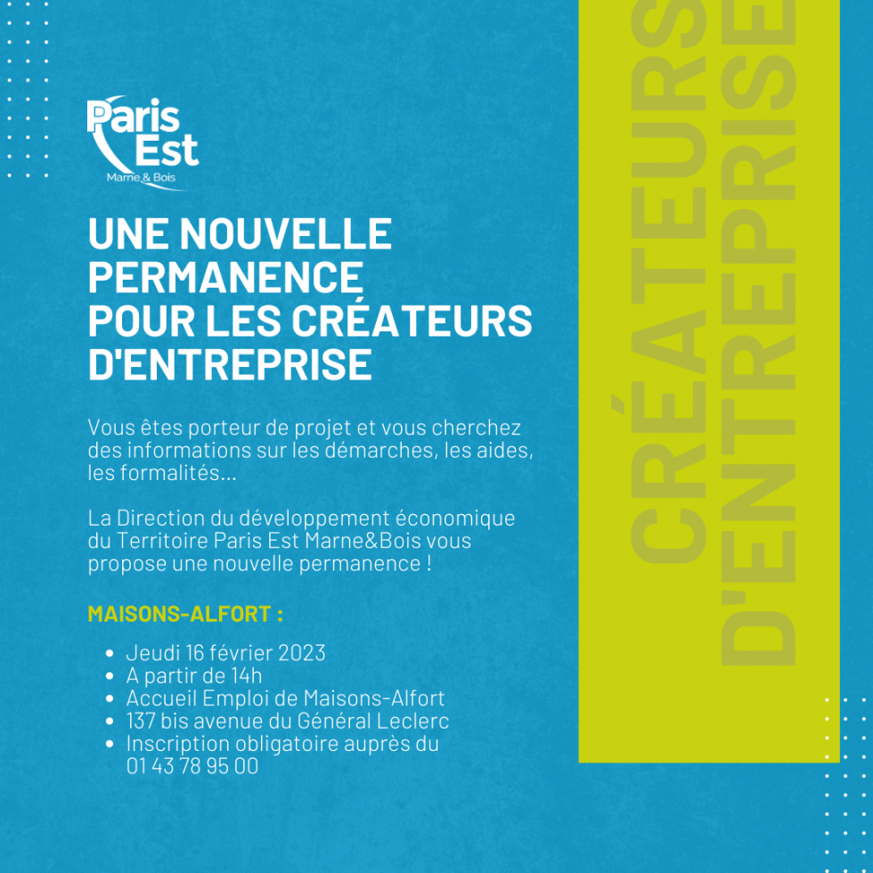 Vous êtes porteur de projet et vous cherchez des informations sur les démarches, les aides, les formalités… ? La Direction du développement économique de Paris Est Marne&Bois vous propose une nouvelle permanence :