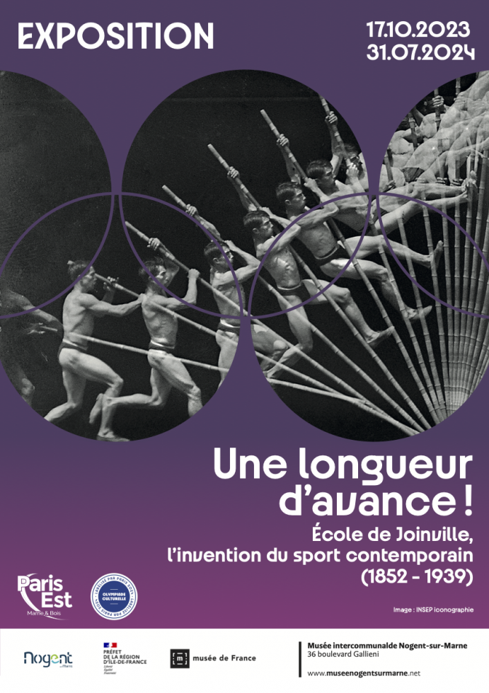 La France accueille les Jeux de Paris 2024, le plus grand événement organisé dans l’Hexagone. À cette occasion, le musée s’intéresse aux origines du sport contem- porain. La première école de formation sportive créée en France est l’Ecole de gymnastique de Joinville-le-Pont (1852). Cette école s’installe dans l’actuel Bois de Vincennes. Elle possède aussi son ponton au bord de la Marne pour la pratique du plongeon et de la natation.